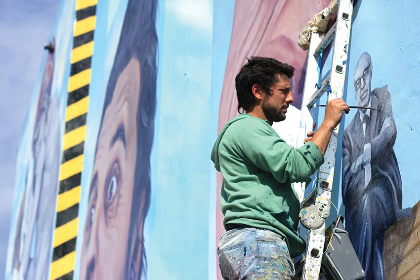 So how does Martin paint murals on such a large scale? “In my case I work with photos and create a small grid dividing the image up into various blocks so I can reproduce it to scale on the wall, and with more time and experience you can recreate the image more accurately and make it bigger and bigger. When painting a large mural you need to get down from the crane and then look at the wall from a distance to check that everything is ok and then go back up again and carry on painting and do it over and over. With more experience your technique improves so that you don´t need to go up and down on the crane quite so much and there comes a point where you are almost painting blind. The reality is that sometimes the mural is so big that you are painting just one metre from the wall and you don´t see the whole picture but the more you paint the faster you become and the less you need to stand back and take a look all the time.”